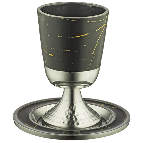 גביע קידוש אלומיניום מהודר עם תחתית 11 ס"מ – בגוון שיש תכולה 210 מ"ל