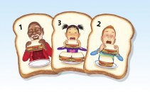 היפכו את הקלפים בזריזות ונסו ליצור "סנדוויצ'ים" עגבניה, חסה, עגבניה והופ! – נוצר סנדווויץ' – הראשון שמניח את ידו על הערימה – זוכה בכולה! אך הזהרו מהגנבים ועצרו את הזללנים – הם עלולים לקחת לכם את ערימת הקלפים מתחת לאף!