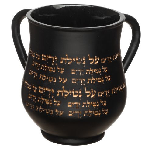 נטלה פולירייזין מהודרת גוון שחור עם כיתוב "על נטילת ידיים" 14 ס"מ
