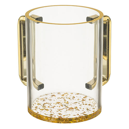 נטלה פרספקס מהודרת שקופה עם בסיס וידיות נצנץ זהב 13 ס"מ